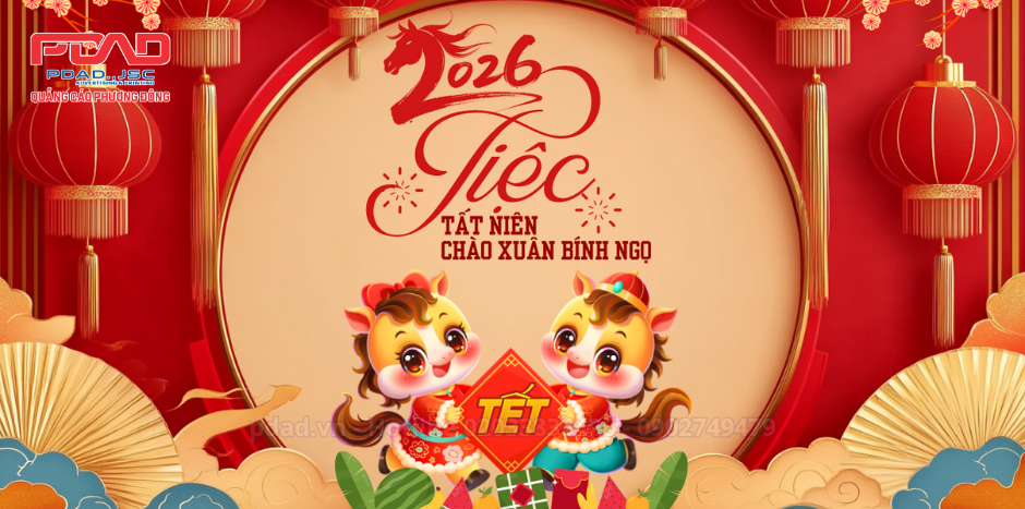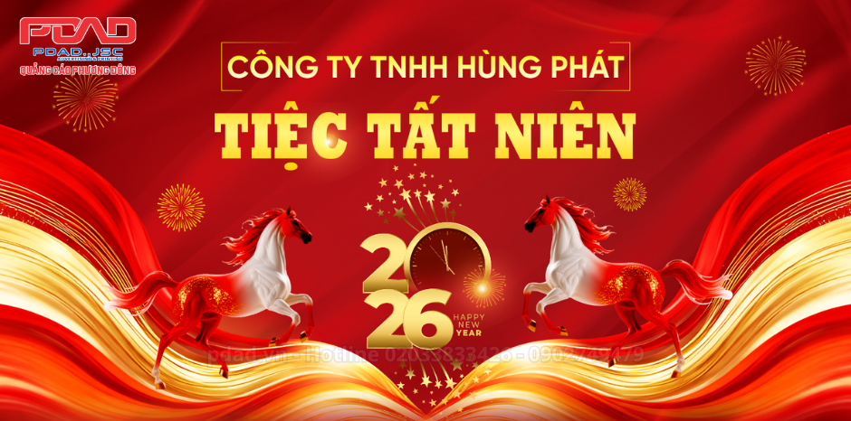 Dịch vụ thiết kế và in phông nền tiệc tất niên 2026 lấy ngay tại Quảng Ninh