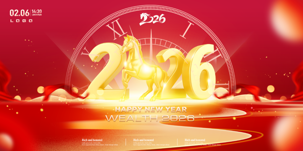 Mẫu Background tiệc tất niên chào mừng năm mới 2026 đẹp, sáng tạo