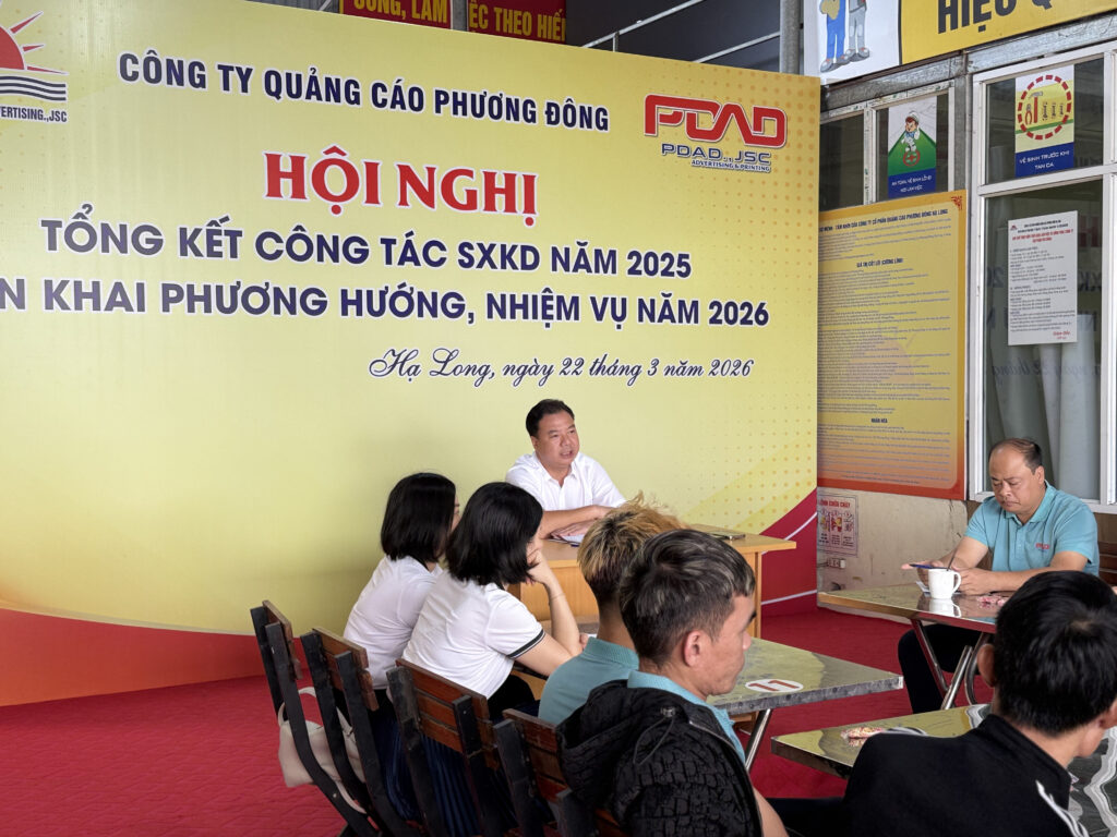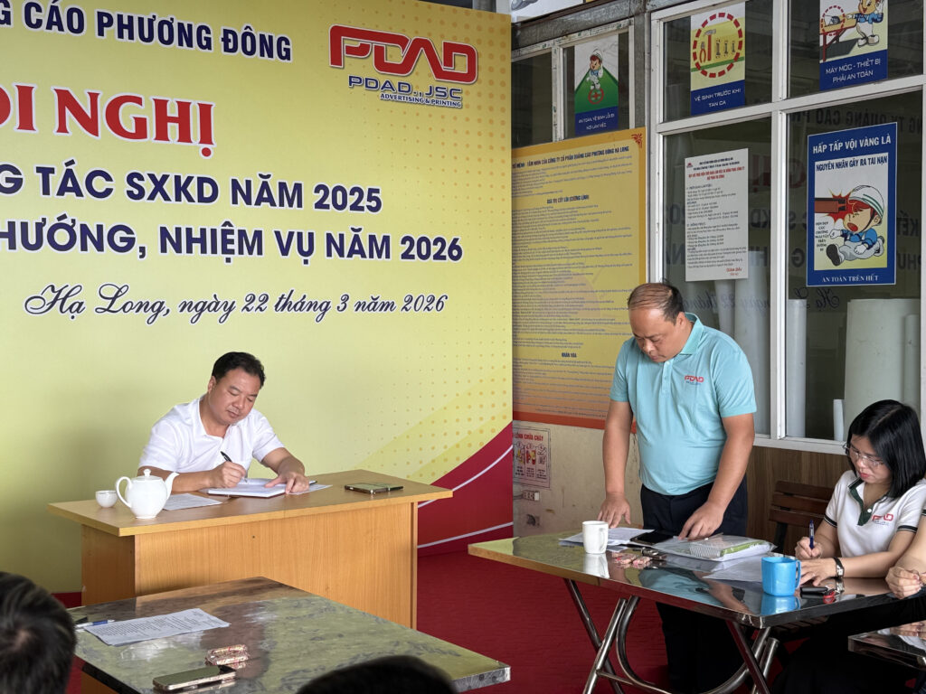 Ngày 22 tháng 03 năm 2026, Công ty Cổ phần PDAD – Quảng cáo Phương Đông đã tổ chức thành công Hội nghị tổng kết hoạt động kinh doanh năm 2025 và phương hướng nhiệm vụ năm 2026. Về dự Hội nghị có 40 đại biểu là cán bộ, công nhân viên công ty.