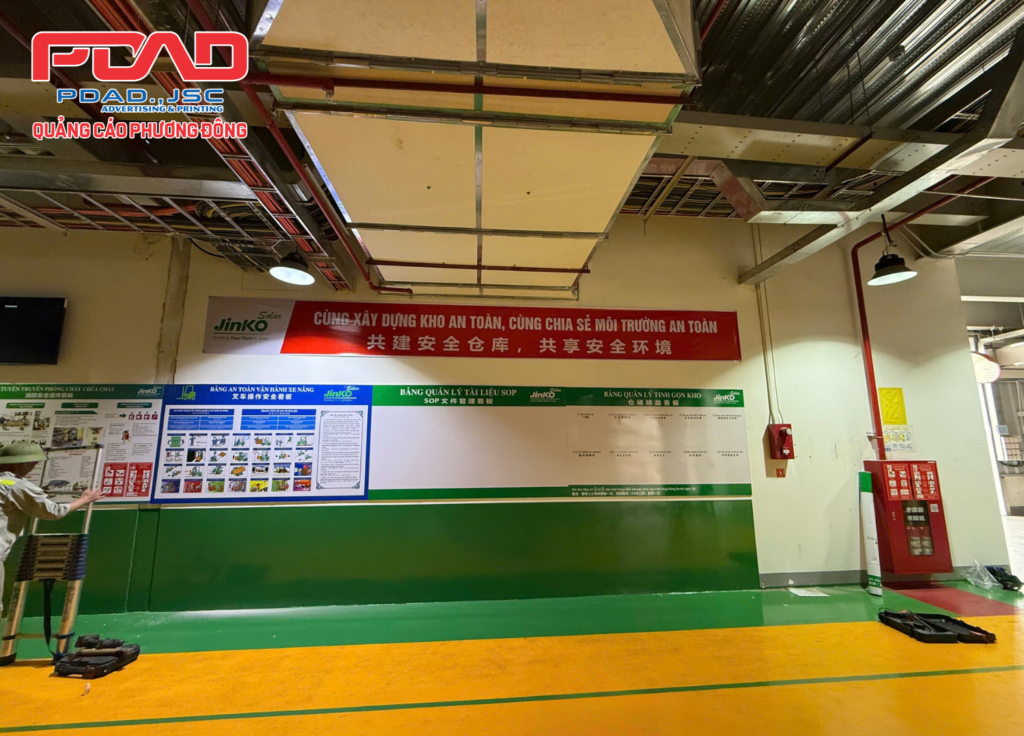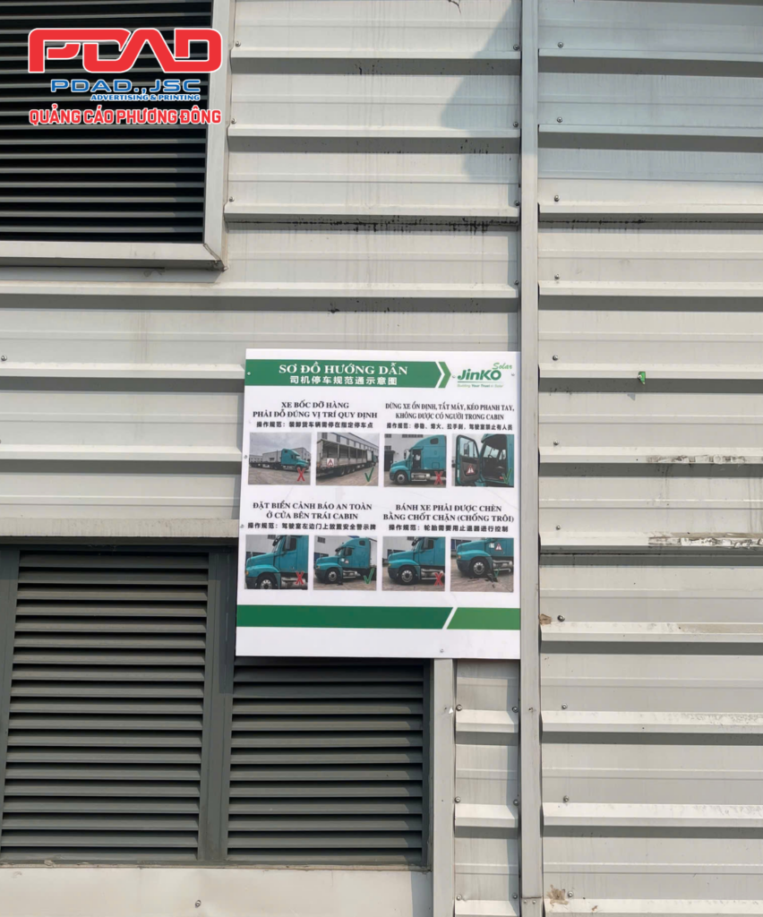 Đối với mỗi nhà máy, khu công nghiệp thì hệ thống biển chỉ dẫn khu vực, biển nội quy là không thể thiếu. Với Công ty Jinko Solar Sông Khoai, Quảng Yên cũng vậy. Quảng cáo Phương Đông được lựa chọn là đơn vị thi công toàn bộ hệ thống biển chỉ dẫn bên ngoài trời, biển chỉ dẫn tòa nhà, biển nội quy, biển báo, biển chỉ dẫn khu vực phân xưởng trong khu công nghiệp.