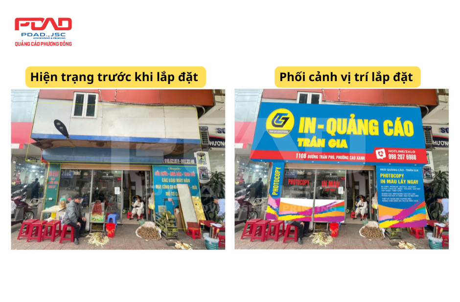 So sánh mặt tiền cửa hàng trước và sau lắp đặt biển hiệu