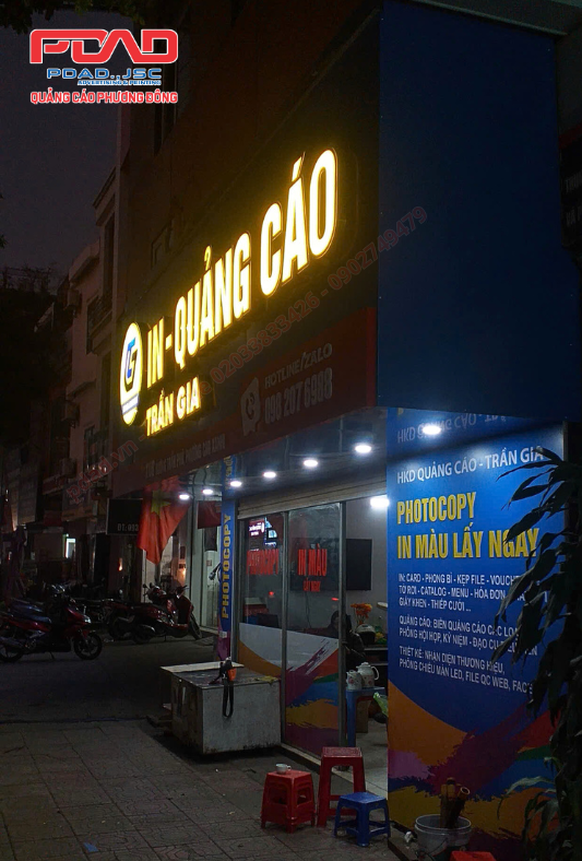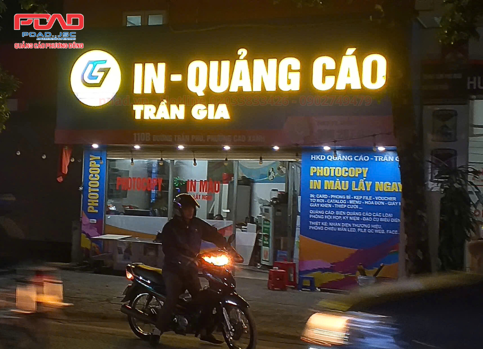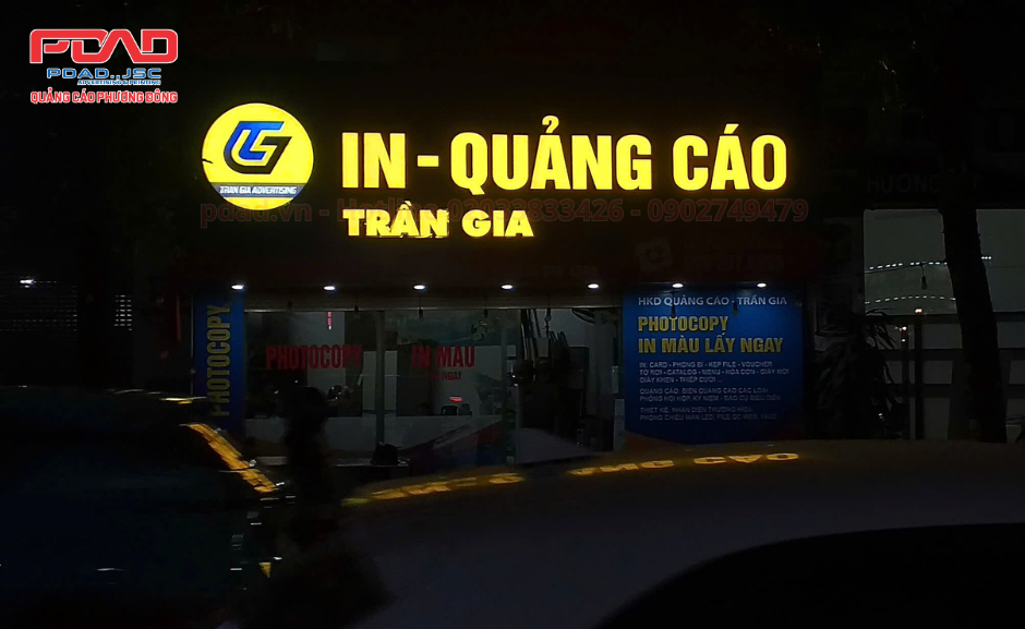 Một số hình ảnh chúng tôi đã thi công biển hiệu mặt tiền cho cửa hàng in quảng cáo Trần Gia: