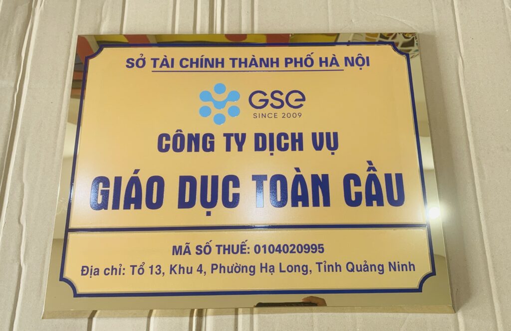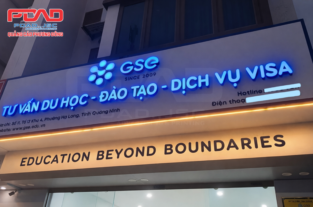 Bất kì ngành kinh doanh nào cũng cần có những tấm biển hiệu đẹp, bắt mắt để tạo ấn tượng với khách hàng. Hãy đến với Quảng cáo Phương Đông để được thiết kế và thi công biển quảng cáo công ty tư vấn du học đẹp như ý. Chúng tôi rất hân hạnh khi được là đơn vị thi công bảng hiệu cho công ty dịch vụ Giáo dục toàn cầu GSE.