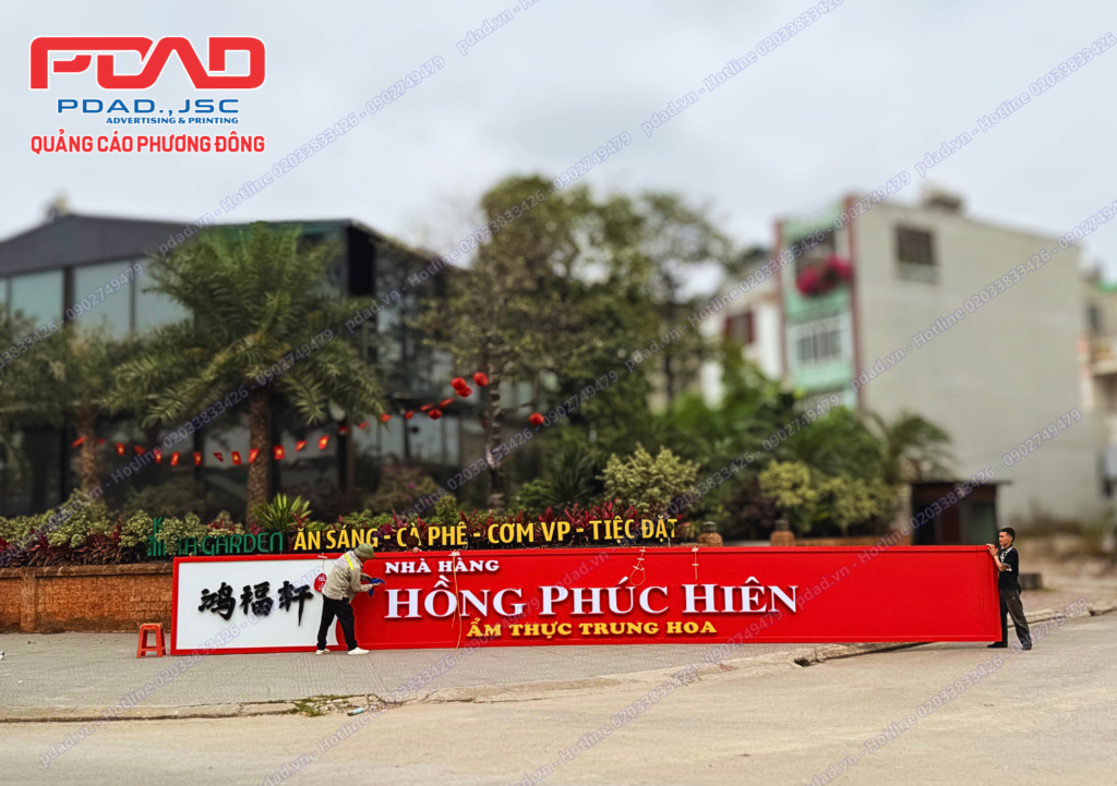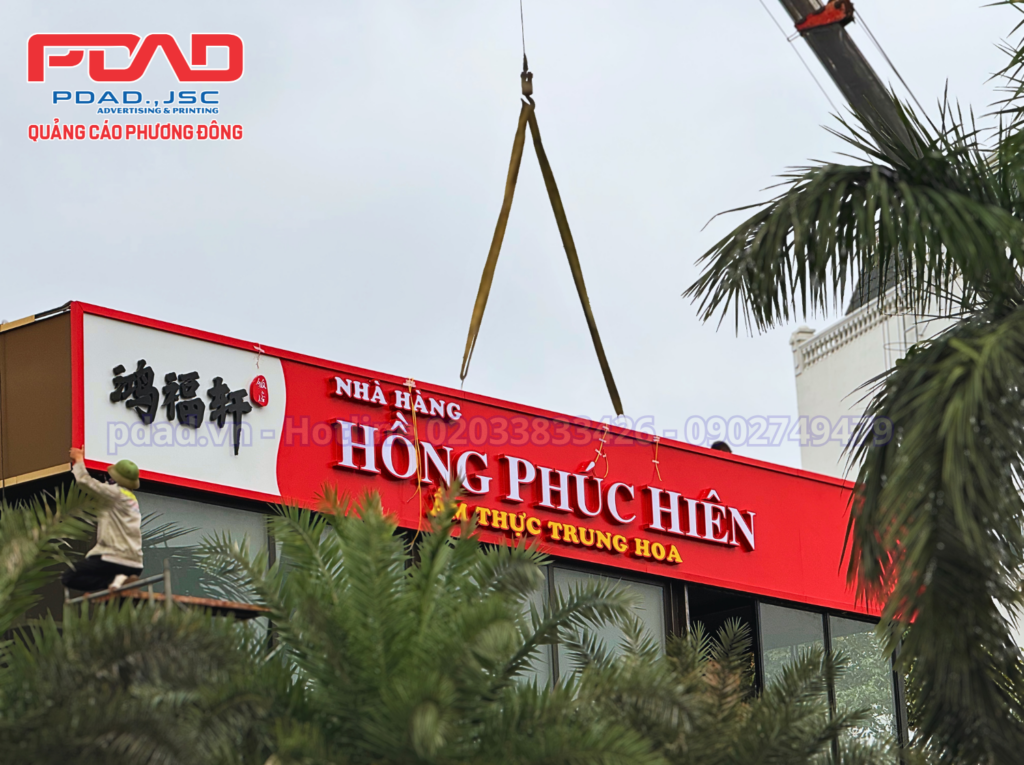 Hình ảnh biển quảng cáo nhà hàng Hồng Phúc Hiên sau thi công