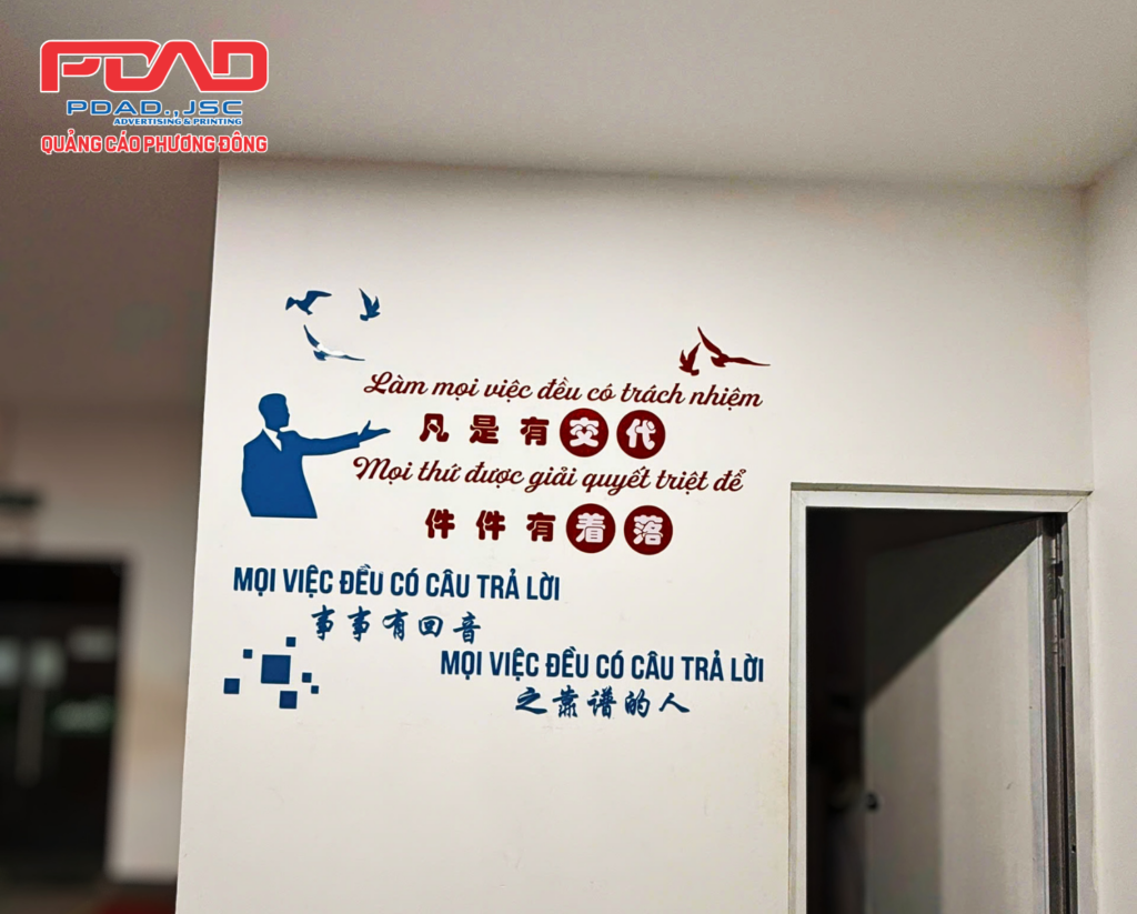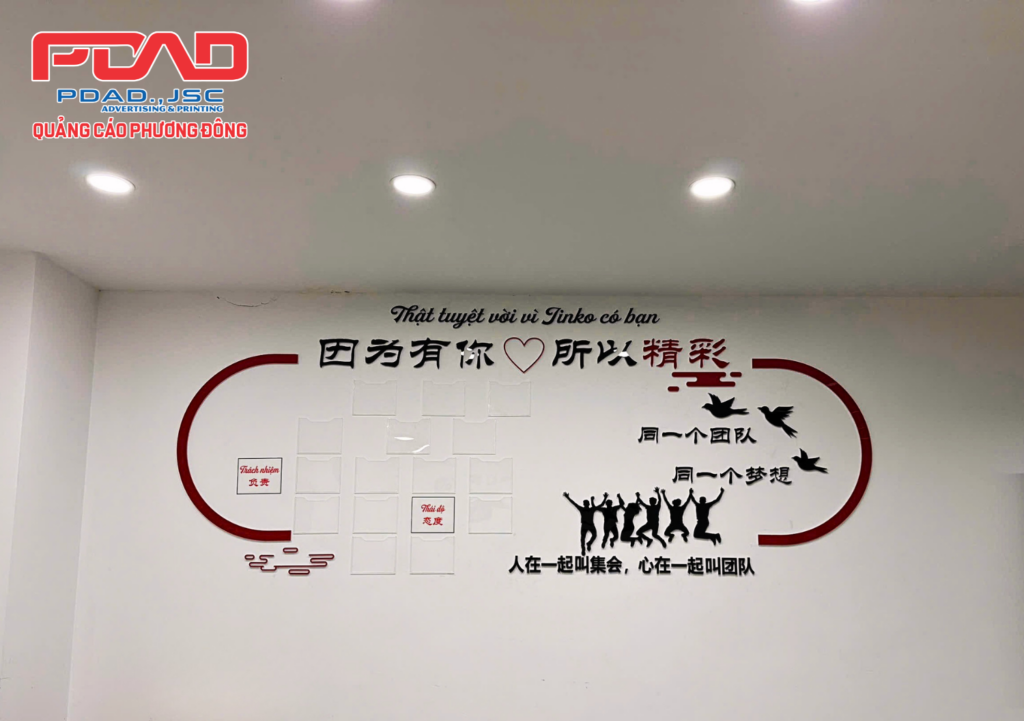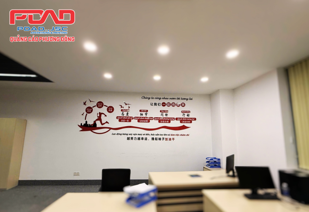 Dán chữ nổi mica trang trí văn phòng làm việc